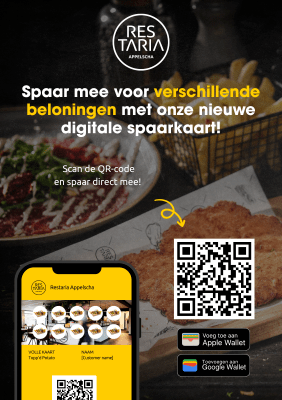 De digitale spaarkaart is gelanceerd. Het is nu mogelijk om een digitale spaarkaart aan te maken. Dit gaat heel eenvoudig via: qr.onme.nl/restariaappelscha
